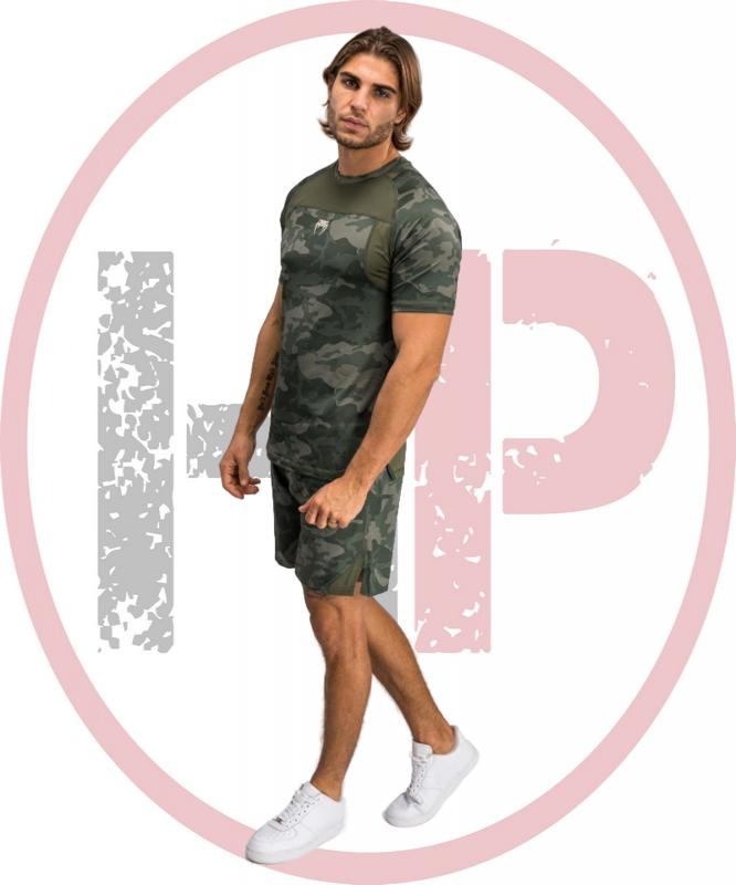 Футболка Venum G-Fit Air Dry-Tech T-Shirt в расцветке Army Camo (зеленый камуфляж) — это высокотехнологичная спортивная одежда от французского бренда Venum, специализирующегося на экипировке для единоборств и фитнеса. Она разработана для интенсивных тренировок, обеспечивая комфорт, вентиляцию и быструю отвод влаги благодаря инновационной технологии Dry-Tech.