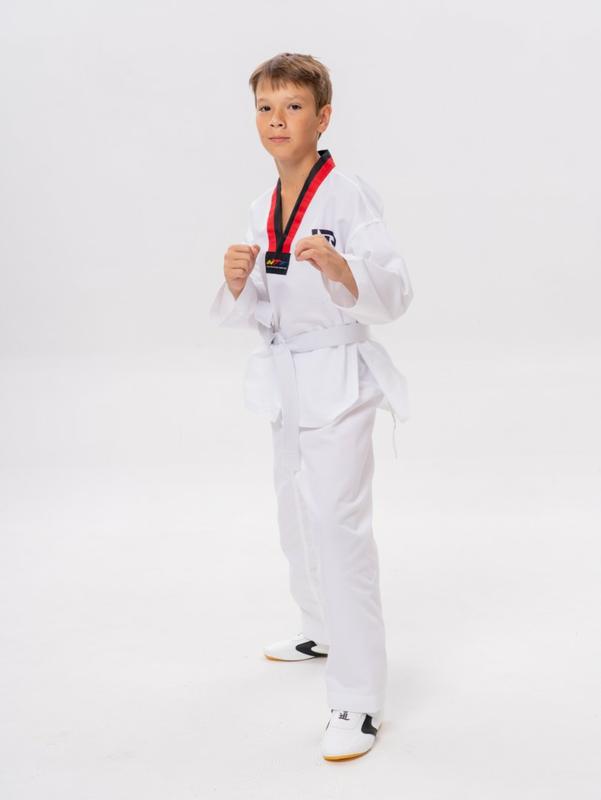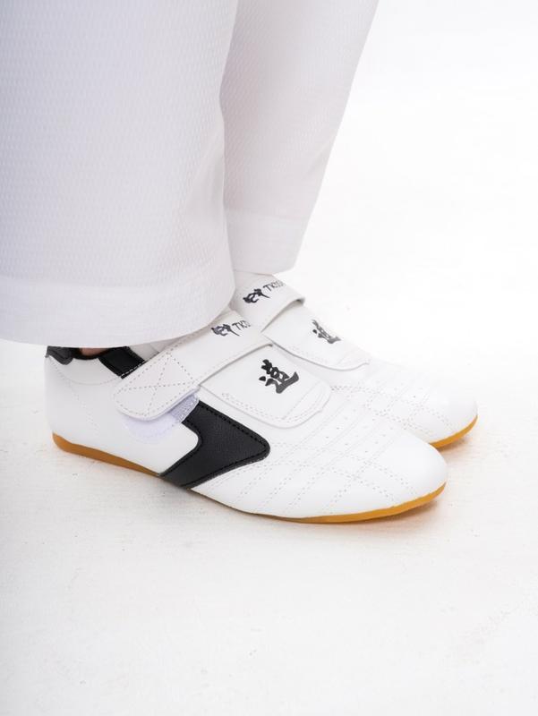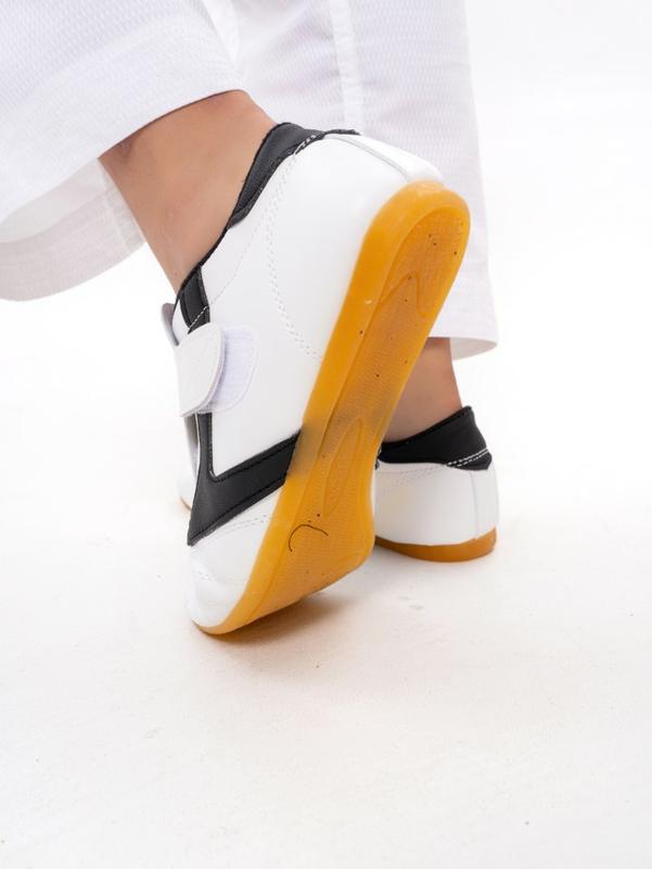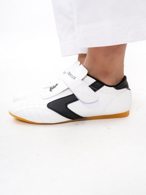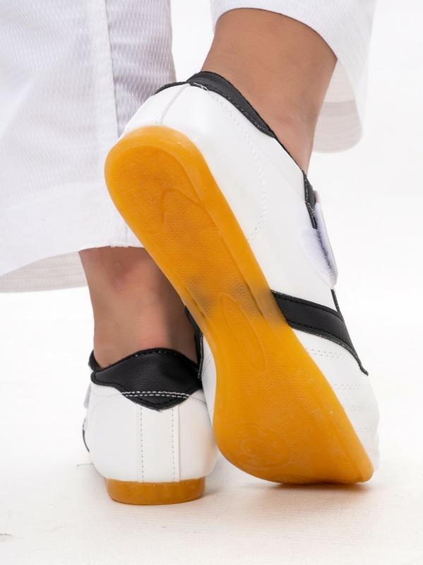 • Специальная подошва обеспечивает отличное сцепление с поверхностью, что минимизирует риск скольжения и травм. Легкость и гибкость обуви способствуют свободе движений, что особенно важно для выполнения сложных элементов в тхэквондо и других боевых искусствах.
